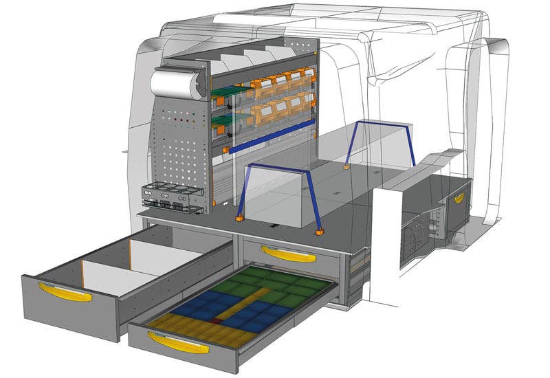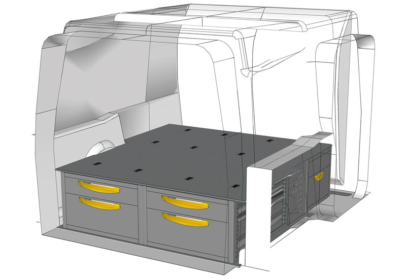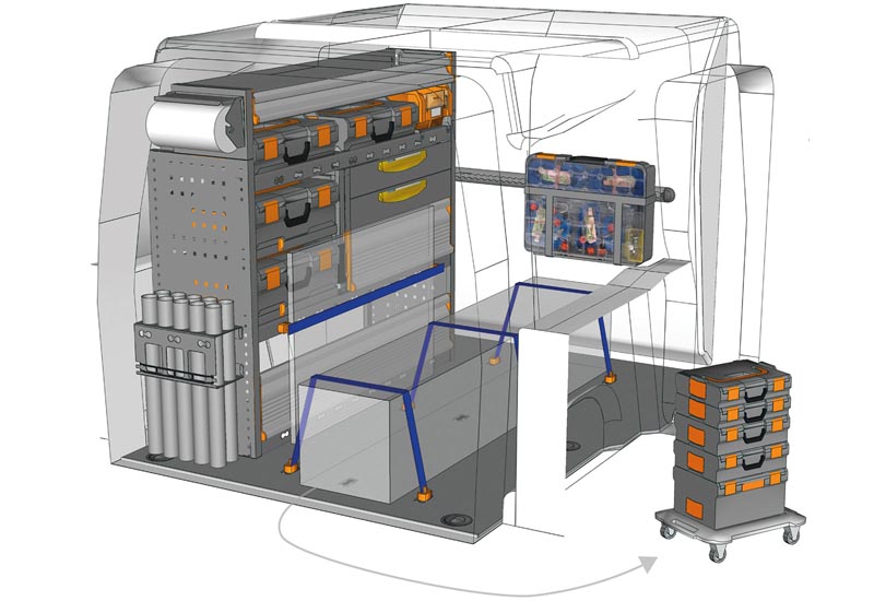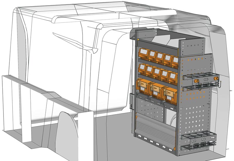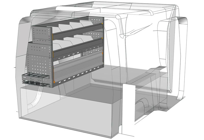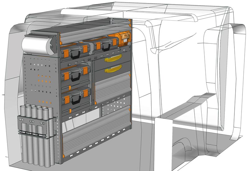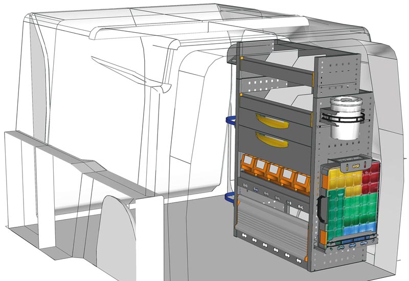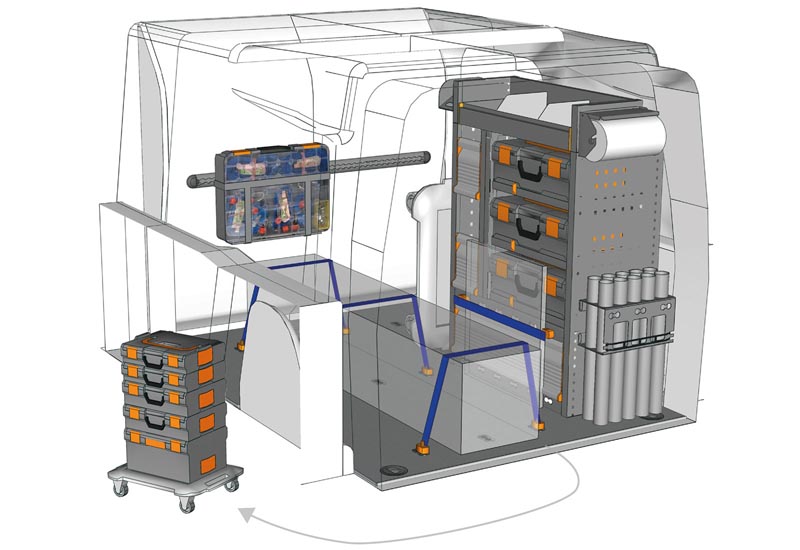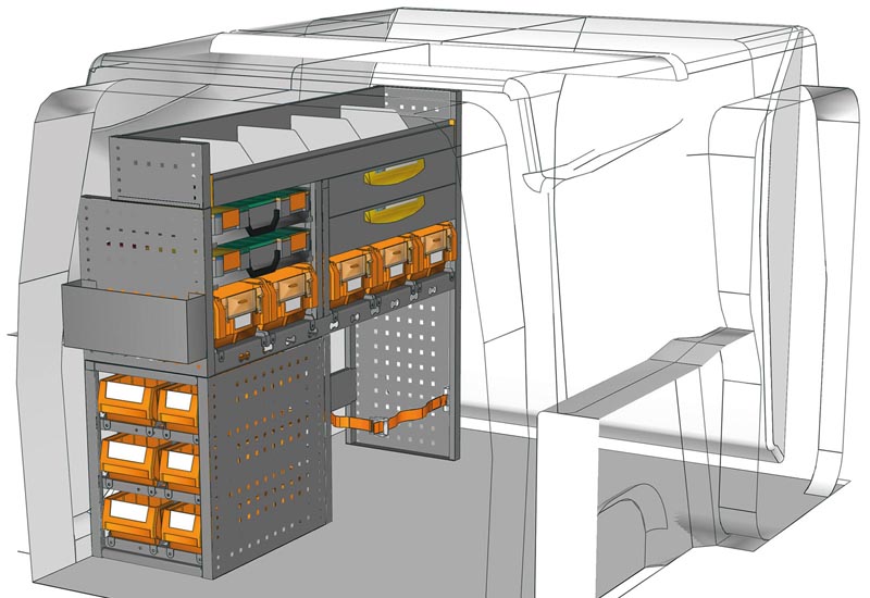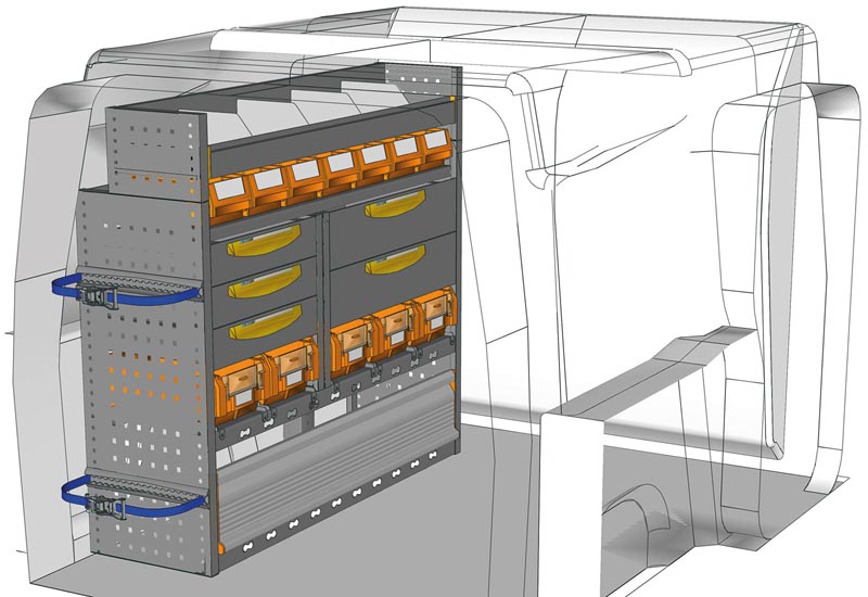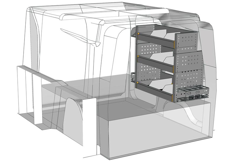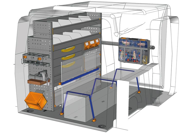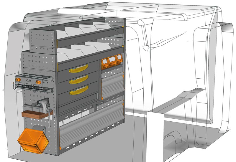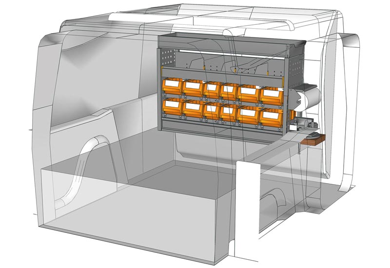 Aménagements pour fourgon Berlingo L1 H1. Vous trouverez ici des exemples d’équipements pour véhicules utilitaires Citroën Berlingo 2018 (Empattement 2785 mm).