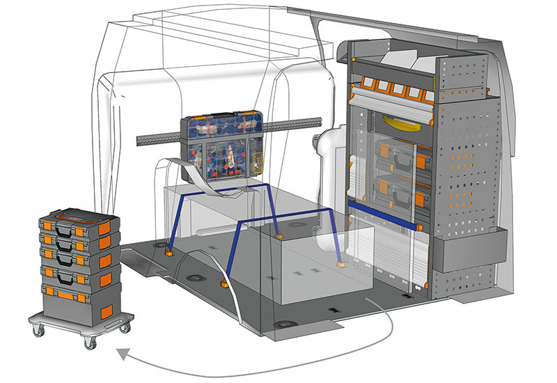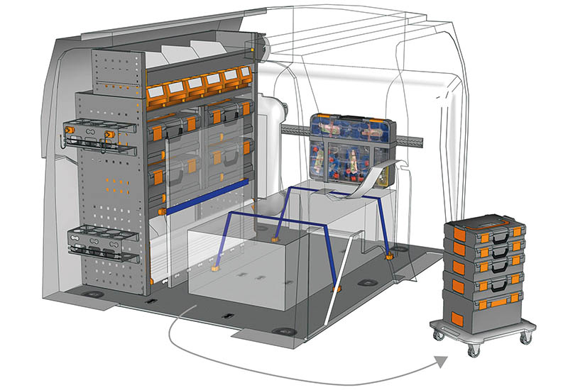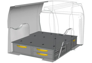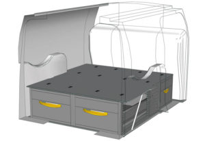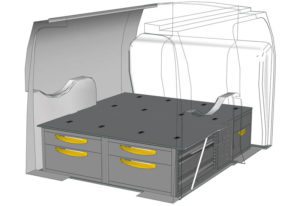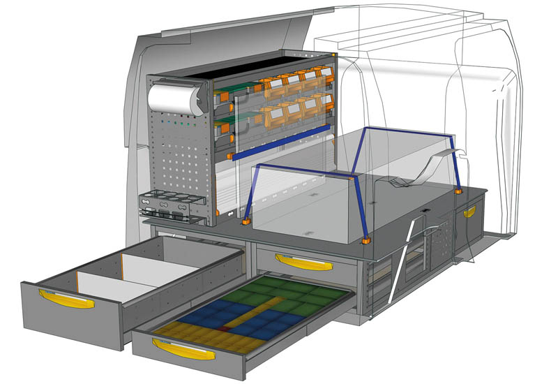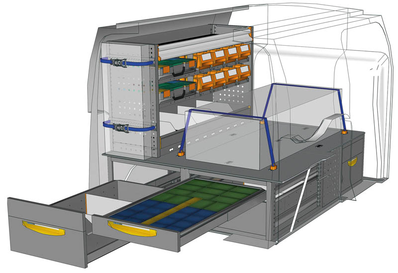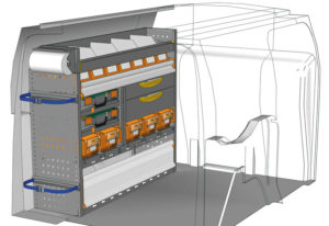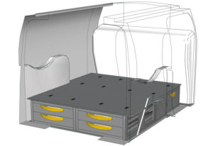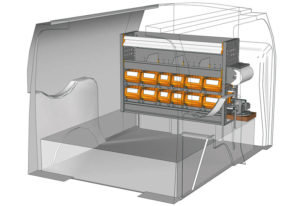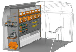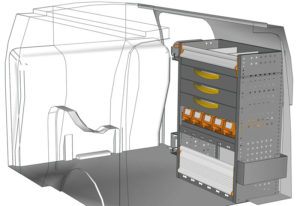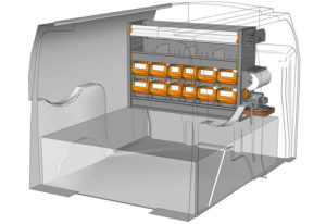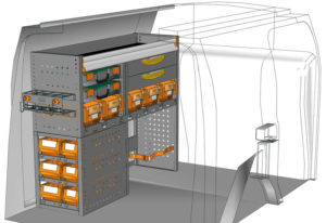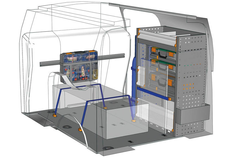 Aménagements pour fourgon Connect L1 H1. Vous trouverez ici des exemples d’équipements pour véhicules utilitaires Ford Connect 2013 (Empattement 2662 mm)