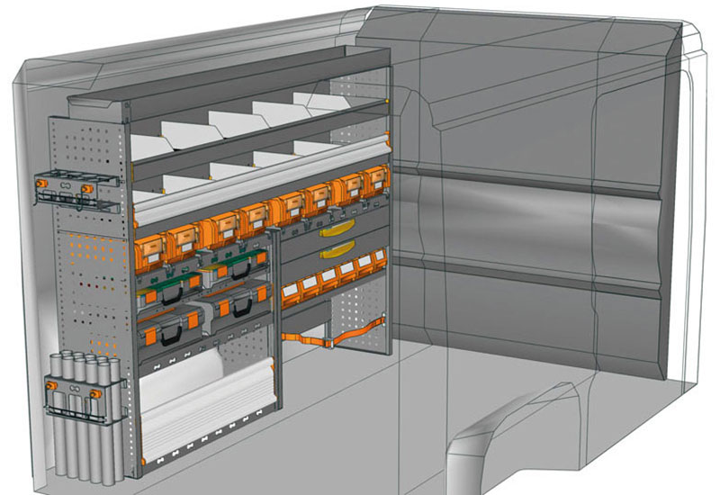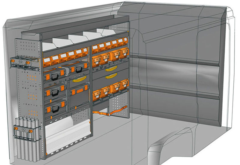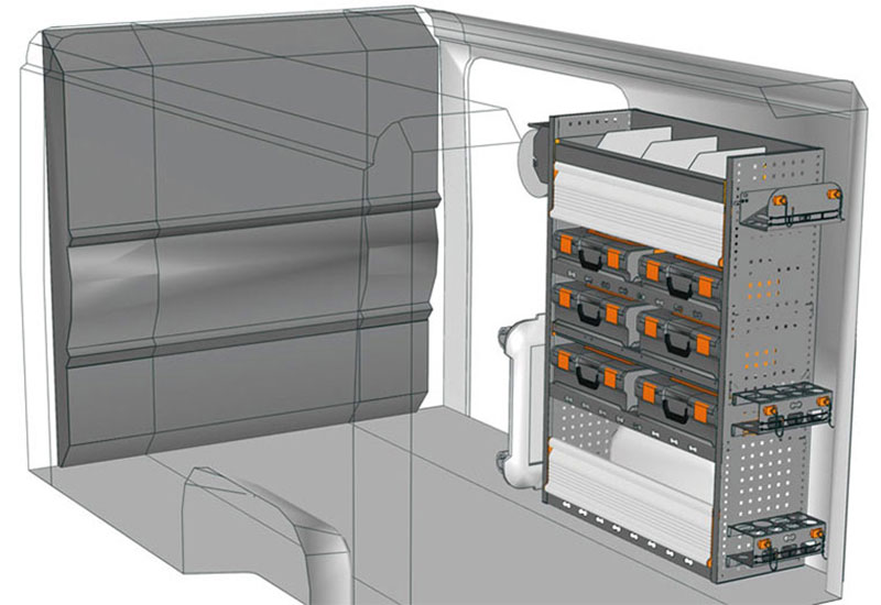 Aménagement pour fourgons Boxer L1 H1. Vous trouverez ici des exemples d’équipements pour véhicules utilitaires Peugeot Boxer (Empattement 3000 mm).