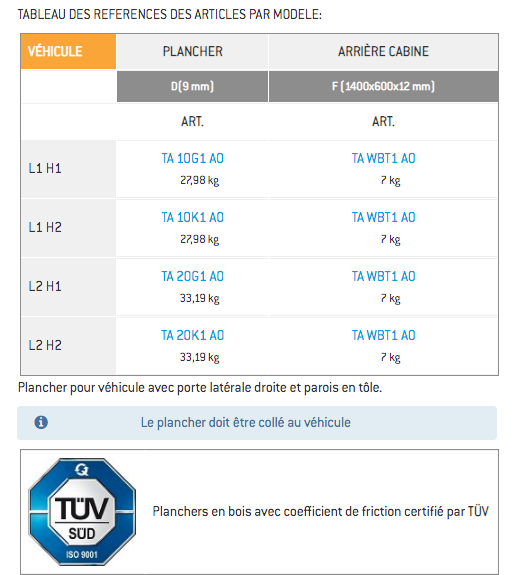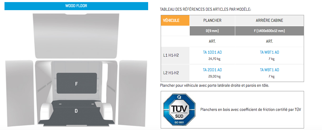 PLANCHERS ET HABILLAGES POUR RENAULT TRAFIC