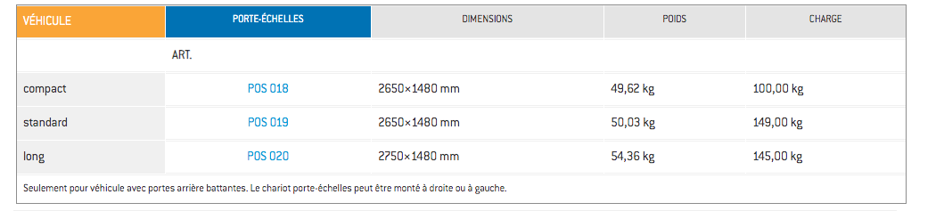 L’échelle et les outillages sont immobilisés pendant les déplacements grâce au porte-tout et au porte-échelle Store Van pour véhicules utilitaires Peugeot Expert 2016. Ces deux systèmes Store Van pour le transport en toute sécurité permettent d’utiliser l’espace du toit en toute tranquillité et en conformité avec le code de la route ; grâce au rouleau de chargement et au chariot porte-échelle en aluminium et acier inox dont ils sont équipés, les manœuvres des utilisateurs sont facilitées.