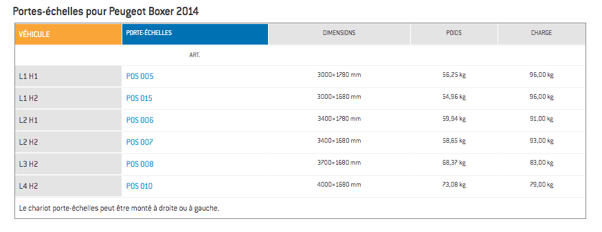 Qualité, fonctionnalité et longue durée : le système à porte-tout et porte-échelle pour véhicules utilitaires Store Van, certifié GS, est idéal pour transporter en toute sécurité l’échelle et les outillages sur le toit de votre fourgon. De plus, le rouleau de chargement et le chariot à descente assistée facilitent les opérations de chargement et de déchargement du matériel et permettent ainsi de gagner du temps. Le porte-échelle et le support multifonction Store Van, qui peuvent être installés indifféremment sur le côté gauche ou droit du toit, sont disponibles pour tous les modèles de Peugeot Boxer.